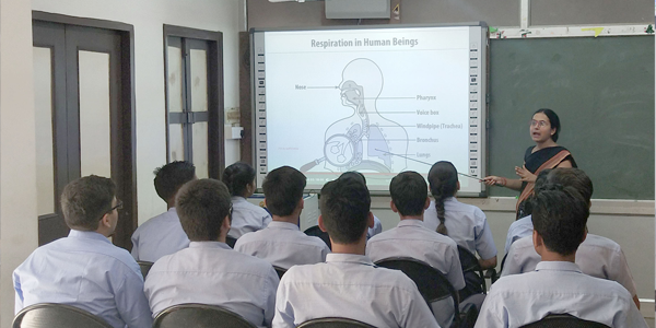 Teaching aids like DVD Players, LCD Projector are available in the air-conditioned A.V. Room. Teachers and students regularly use these teaching aids and gadgets.